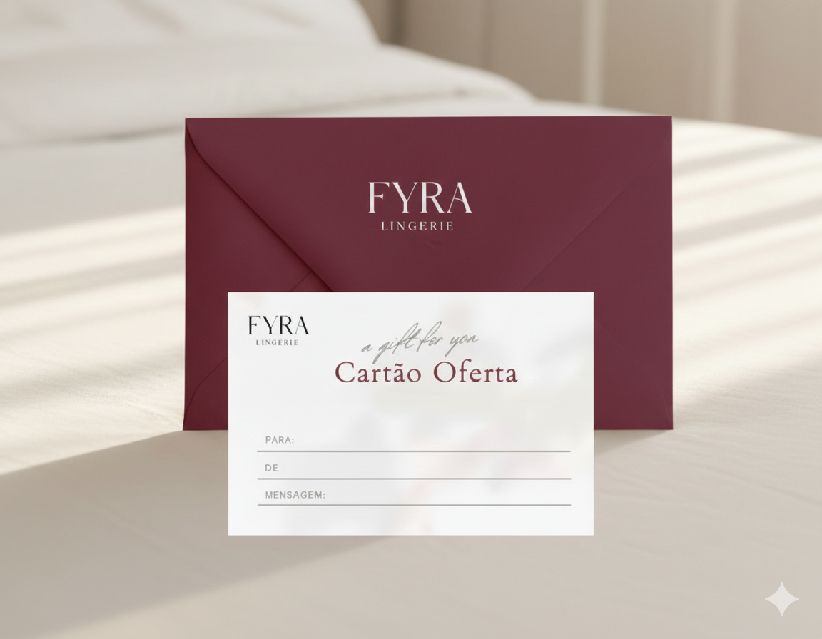 Se quiseres um voucher personalizado idêntico ao da imagem, envia um e-mail para fyra.loja@gmail.com com os campos "De", "Para", e uma curta mensagem. Nós criamos e enviamos um PDF personalizado gratuitamente. Perfeito para imprimir ou enviar por e-mail.